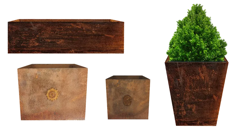 Auswahl an Edelrost xxl Pflanzkuebeln aus Eisen